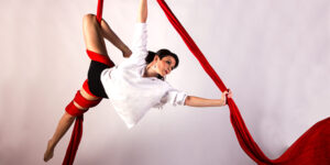 Festival / Sommercamp / Workshops / Girl training on aerial silks
